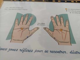 • Pressions : Pression modérée avec le pouce dans la paume de la main, en effectuant des mouvements circulaires sur les zones tendues.